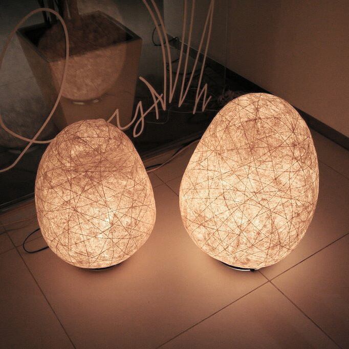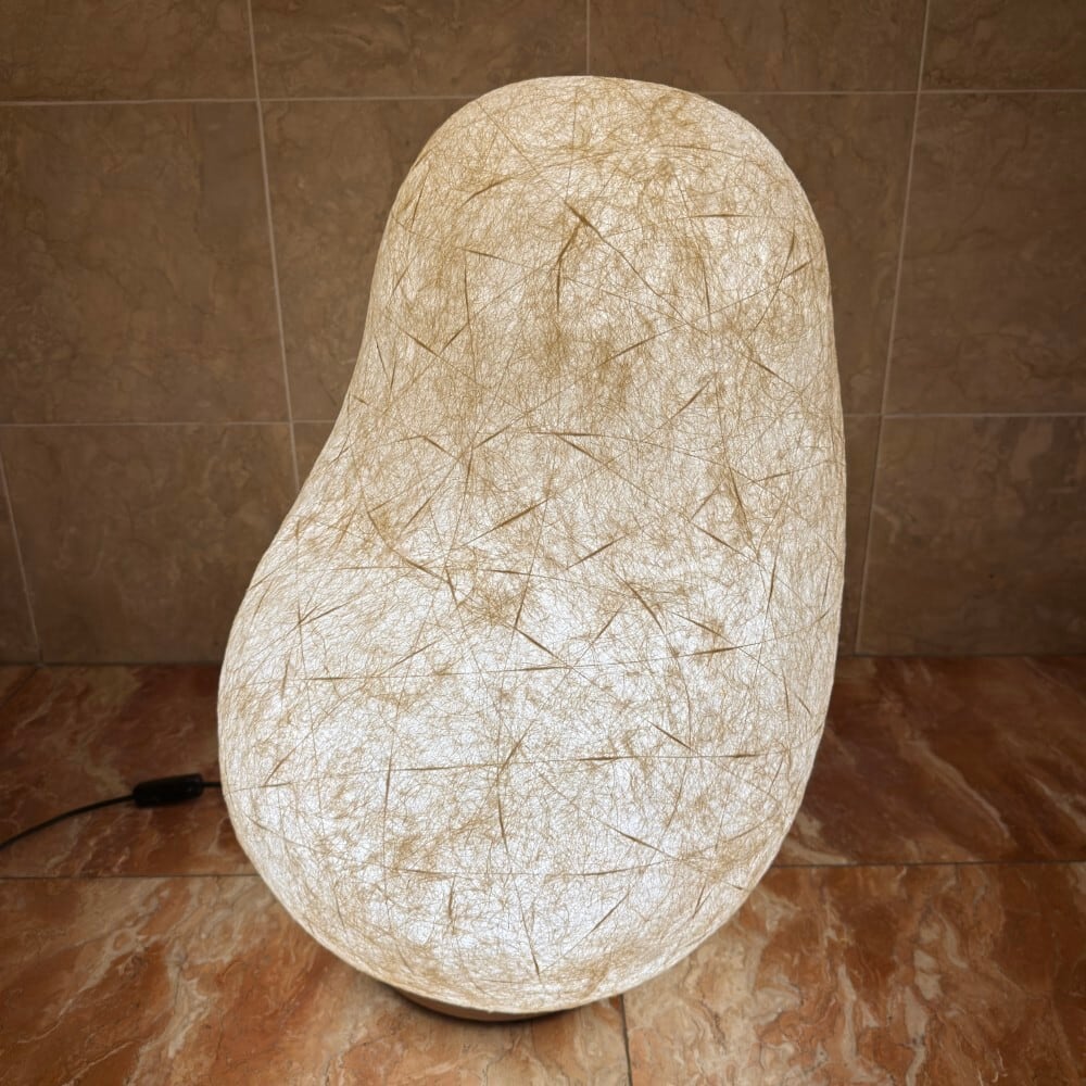 LT-S001 SORAMAME Mは、そら豆をイメージしたデザインのスタンドタイプの和紙ランプシェードです。スラブの入った糸を使用することで、アクセントが際立ち、独特の温かみを演出します。お部屋の雰囲気を優しく彩るアイテムです。